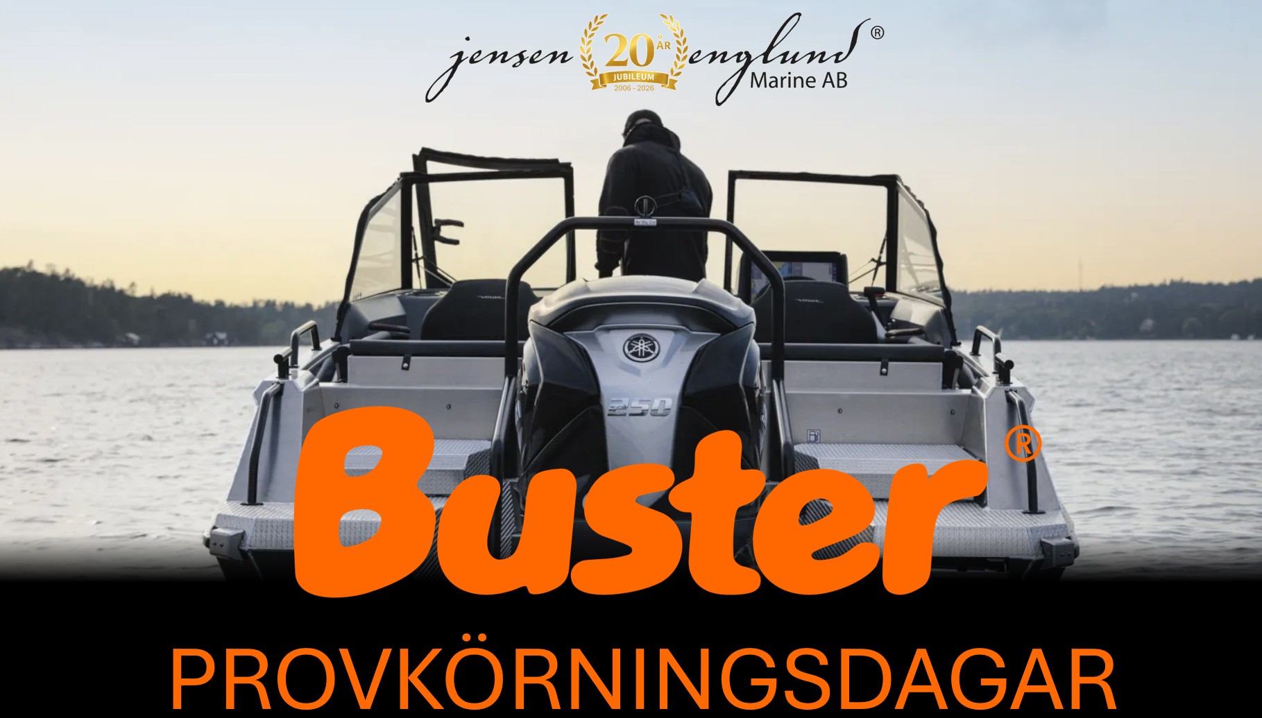 Under våra provkörningsdagar visar vi Buster-båtar både på land och i vattnet.
