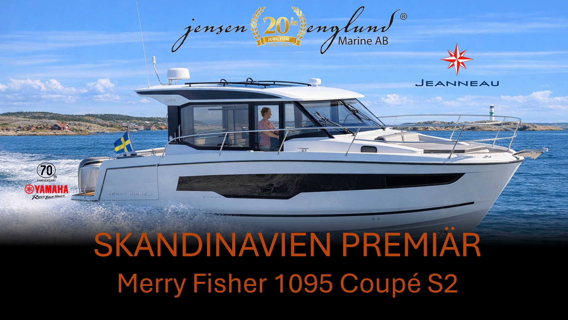 Välkommen till en exklusiv Skandinavien‑premiär där vi presenterar den helt nya Jeanneau Merry Fisher 1095 Coupé S2 – en fulländad kombination av innovation, komfort och dynamik. I denna specialutrustade version får du uppleva båtens fulla potential tack vare Yamaha 300 hk utombordare och det avancerade EX Helm Master joystick‑styrsystemet, som ger en helt ny nivå av precision och kontroll vid manövrering.